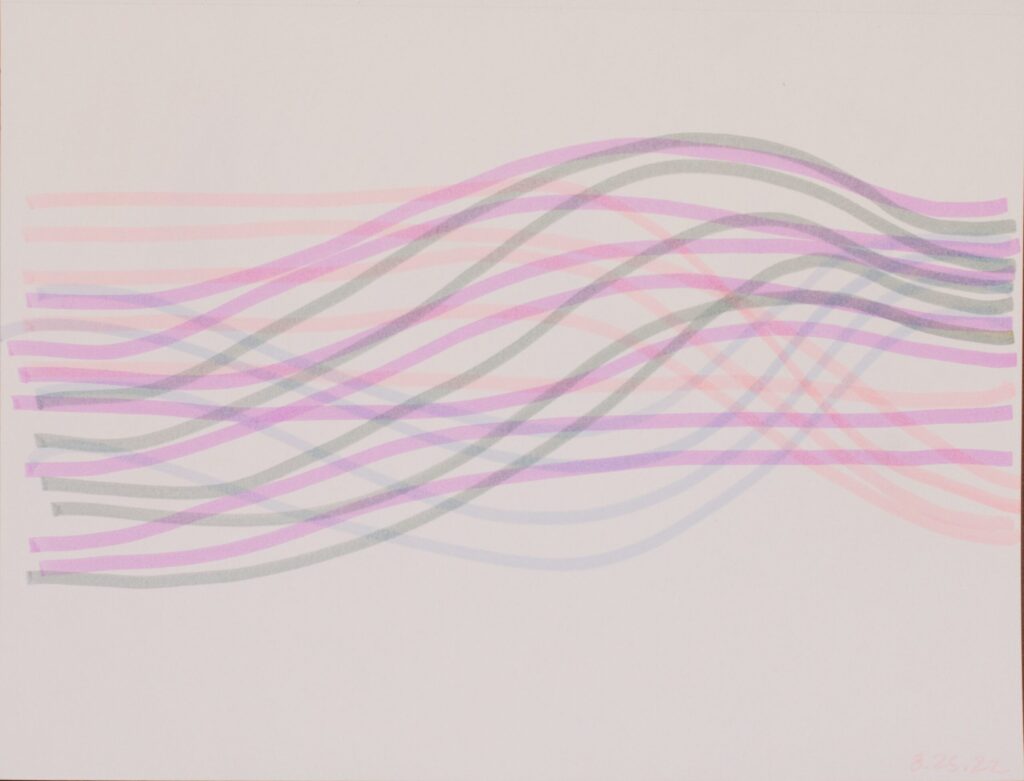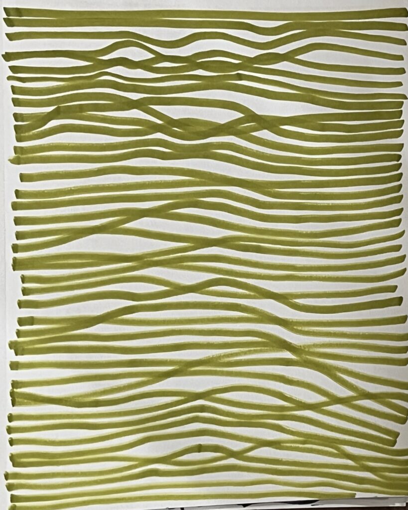 “I started drawing lines. One line next to another. I tried to get as close as I could without touching the other line. I was drawing with the space between the lines, the negative space. The slight irregularities created ripples. The flow of making the lines was meditative. The lines resembled water, wood grain, and wrinkled fabric. Often a line depicted a moment in my life. A line could represent one day, one year, or an important chapter in my life. Without any exact science behind it, the art could be seen as an emotionally driven data chart. A line represented my experience, and other lines could be notable people in this journey. The lines helped me make sense of relationships that were good, bad, mysterious, and joyful. It helped me see how imperfect relationships are, how dependent we are on each other, and how parallel energy can be in concert or in conflict.”